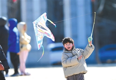 2月23日,一名小朋友在山東省滕州市市民公園放風箏。早春時節,天氣漸暖,人們在周末紛紛走出家門,擁抱自然,樂享春光。 新華社發