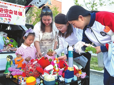 ①新疆生產(chǎn)建設(shè)兵團(tuán)第八師石河子市實(shí)驗(yàn)幼兒園的孩子在開(kāi)展義賣。