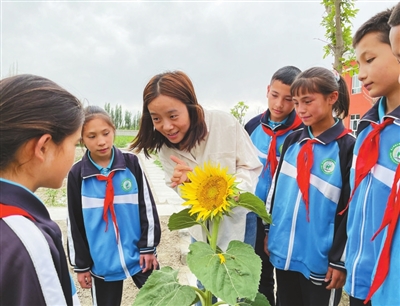 ②新疆生產(chǎn)建設(shè)兵團(tuán)第三師四十四團(tuán)第一中學(xué)的教師在帶領(lǐng)學(xué)生認(rèn)識(shí)植物。