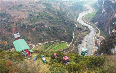 如今,當地的孩子先乘坐六七分鐘景區觀光車,轉乘觀光電梯垂直爬升268米,再換乘空中纜車爬升200余米,加上步行,半小時就能到學校。