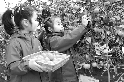 ③近日,在重慶市北碚區(qū)縉云幼兒園屋頂果園,孩子們?cè)诓烧墒斓母涕佟? 秦廷富 攝