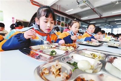 浙江省德清縣春暉小學學生在吃“校園餐”。 謝尚國 攝