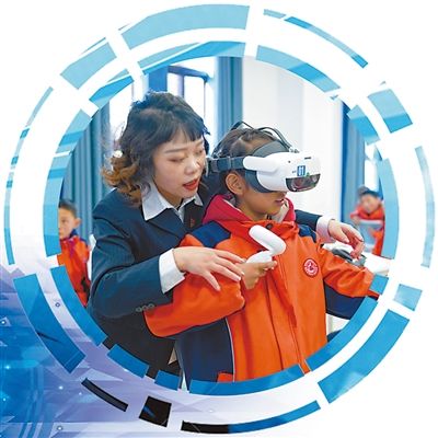 ②③四川省甘孜州新龍縣城區第一完全小學校學生在縣智慧教育中心進行VR虛擬實驗體驗活動。 學校供圖