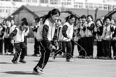 近日,在山東省青島市李滄區實驗小學,學生在課間比拼滾鐵環。該校組織學生在15分鐘課間進行滾鐵環、打陀螺、丟手絹等傳統體育活動,讓傳統游戲在校園中煥發出新活力。近年來,青島市李滄區在全區小學校園常態化將課間10分鐘延長至15分鐘。各學校根據實際情況創設踢毽子、跳繩、呼啦圈等豐富多元的課間活動,促進學生健康成長。張鷹 攝