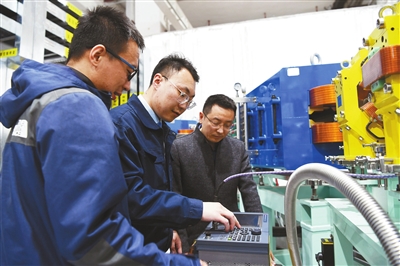 ▲工作人員在調試束流傳輸設備。