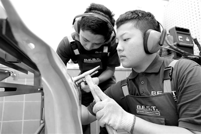 北京市昌平職業學校汽修專業寶馬BEST項目班學生進行實訓。