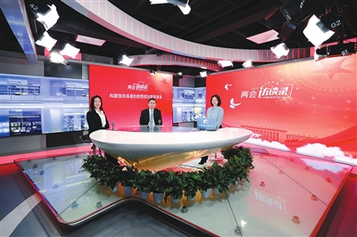 3月7日,全國(guó)人大代表、山西財(cái)經(jīng)大學(xué)馬克思主義學(xué)院副教授白琦瑞(左),中國(guó)人民大學(xué)習(xí)近平新時(shí)代中國(guó)特色社會(huì)主義思想研究院院長(zhǎng)、馬克思主義學(xué)院教授秦宣(中)做客中國(guó)教育報(bào)刊社“兩會(huì)訪談錄”演播室。 本報(bào)記者 單藝偉 攝