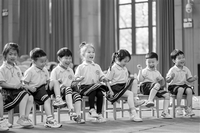 浙江嘉興經(jīng)濟技術(shù)開發(fā)區(qū)石雪幼兒園的孩子們開心地參與音樂活動。夏麗娟 供圖