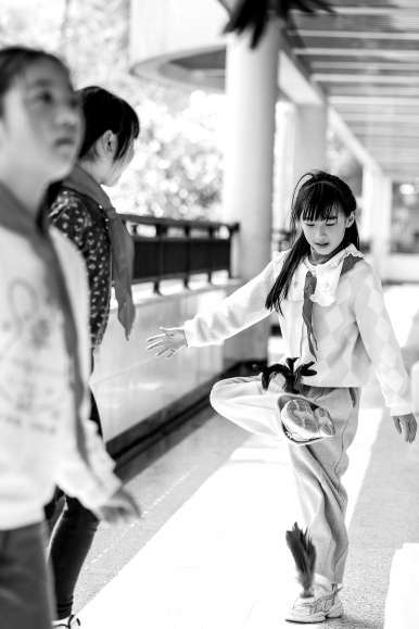 近日,杭州市京都小學學生課間在走廊上踢毽子。