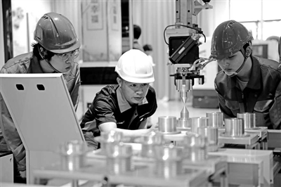 浙江工業(yè)職業(yè)技術(shù)學(xué)院學(xué)生在高端裝備制造技術(shù)產(chǎn)教融合實踐中心實訓(xùn)。 沈佳丹 攝