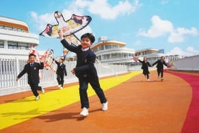 ②永康市江南小學的孩子們在校園里放飛紙鳶。 浙江省教育廳供圖