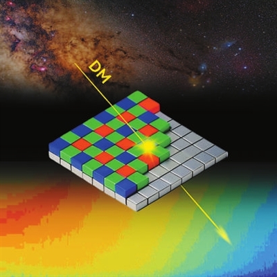 祝斌介紹,當暗物質以接近光速的速度撞擊固體材料時,會引發固體材料中的“等離子體共振”,這種共振可以被高精度探測器捕捉到,從而直接證明暗物質的存在。基于此,武雷、祝斌團隊提出了一種新型探測方法,能顯著提升半導體探測器對輕暗物質的靈敏度,揭示暗物質激發“等離激元”的微觀過程。