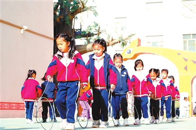 該園高度重視幼兒體育鍛煉,將傳統游戲與現代活動、創新玩法相結合,保障幼兒每天戶外活動時間不少于2小時,體育運動時間不少于1小時,每周至少一節足球課,每月一次體能大循環,通過豐富多彩的體育活動促進幼兒身心和諧發展。 本報記者 尹曉軍 通訊員 張自瑋 攝