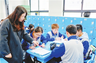 湖南省長沙市望城一中外國語學校自習課上,教師根據(jù)數(shù)智作業(yè)反饋對學生進行個性化輔導。 學校供圖