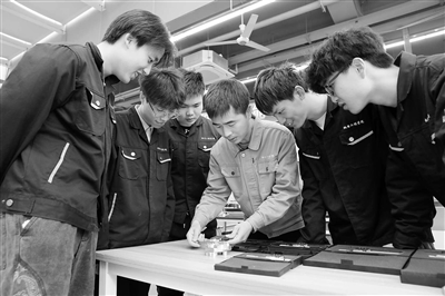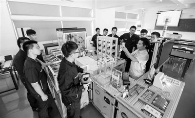 金華職業技術大學與永康職業技術學校共建“浙中五金智能制造產業學院”。圖為產業學院學生進行技能實訓。 學校供圖