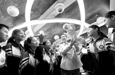 近日,河北省邯鄲市邯山區實驗小學的教師向學生們傳授航空航天知識。該校開展“航天科普點燃少年飛天夢”主題活動,激發學生探索宇宙、探夢航天的夢想。郝群英 攝