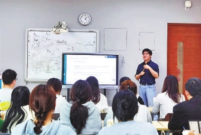 學校教師在為大學生講解社區駐點知識。學校供圖