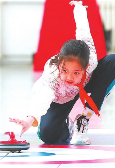 在學(xué)校陸地冰壺社團(tuán)的組織下,白塔嶺小學(xué)學(xué)生利用大課間進(jìn)行冰壺練習(xí)。