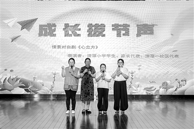 在常州市鐘樓區2025年心理健康活動月主題活動中,學生、家長和社工代表共同表演情景劇。盛佳妮 攝
