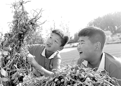 山東省棗莊市嶧城區底閣鎮前王小學學生體驗勞動收獲的快樂。孫晉之 攝