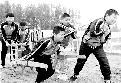 山東省棗莊市嶧城區陰平鎮傳開希望小學學生體驗耕種勞作。孫晉之 攝
