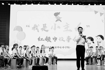 昆山市陸家中心小學校開展的“我是小主人”紅領巾議事會活動(上圖);該校協同南京師范大學心理學院及泗橋社區開展的親子活動(下圖)。 徐薛煒攝