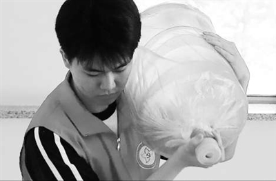 當日,王俊杰往社區所在樓層扛桶裝水。