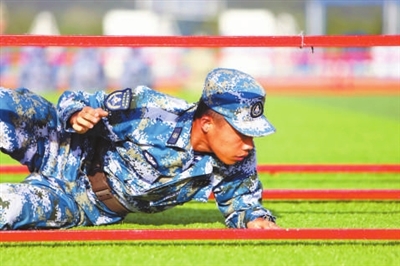 除航海訓練外,水上訓練、輕武器訓練、行軍拉練、野外生存等項目也緊扣海軍實戰需求,考驗學員的體能與意志。來自北方民族大學的莊一鳴雖擅長游泳,但在水中穿越魚雷管道、翻越滾筒等障礙時仍覺得有不小挑戰。“這些項目不僅考驗體能,更是對意志的錘煉。”她表示,父親曾在南海艦隊服役,軍人家庭的成長環境讓她對軍事訓練充滿熱情,也激勵她在訓練中不斷突破自我。