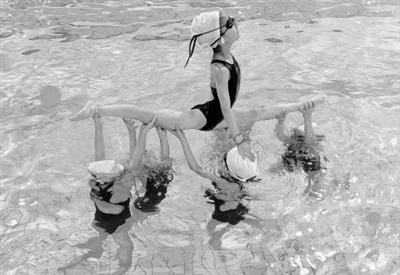 鹽城市解放路實(shí)驗(yàn)學(xué)校暑托班學(xué)生在進(jìn)行水中劈叉托舉訓(xùn)練。學(xué)校供圖