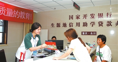 8月18日,在重慶市永川區教委學資與衛保中心,一位準大學生在家長的陪同下前來辦理生源地信用助學貸款業務。陳仕川 張玲 攝