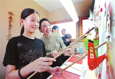 8月26日,湖北省荊門市婦聯干部帶領“彩虹行動”愛心托管班的孩子學習皮影技藝。 趙平 吳兆敏 攝