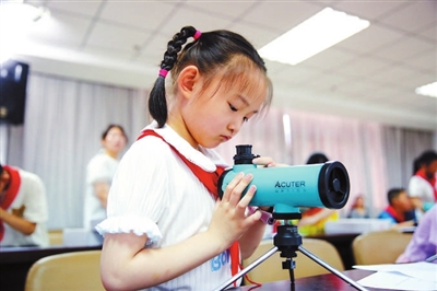 江蘇省如皋市如城街道組織開展暑期公益科普研學活動,學生們來到當地天文望遠鏡生產基地,學習組裝小牛頓望遠鏡。 徐慧 攝