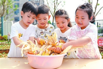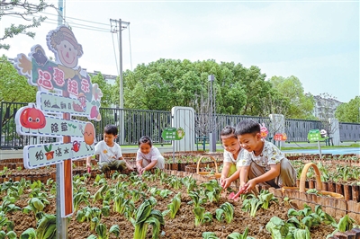 9月15日,在安徽省合肥市廬陽區宿州路幼兒園云錦分園,孩子們正在校園農場里勞動。近年來,廬陽區教體局合理規劃校園農場種植項目,引導孩子們養成熱愛勞動的好習慣。