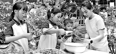 拓展實踐課程包括家庭勞動課程和社區勞動課程。學生和家長以四季為時序,在陽臺種植蔬菜瓜果,探索優化家庭食譜;以社區田園農場為主陣地,地區兄弟學校學生、港澳姊妹學校學生、社會熱心團體人士等相聚于此,開展春耕大賽、秋收節等活動,讓學生在實踐交流中學習成長。