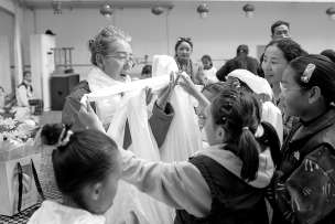 孩子們給巴桑獻上哈達,送上遲到的教師節(jié)祝福。
