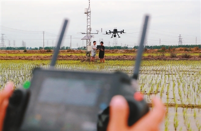 在江蘇鎮(zhèn)江新區(qū)永興農(nóng)機機械化專業(yè)合作社,江蘇大學(xué)農(nóng)業(yè)工程學(xué)院師生利用低空無人機采集大田信息。