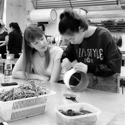 湖南師范大學(xué)美術(shù)學(xué)院學(xué)生(右)與法國(guó)大學(xué)生共同參與設(shè)計(jì)工作坊。 湖南師范大學(xué)供圖