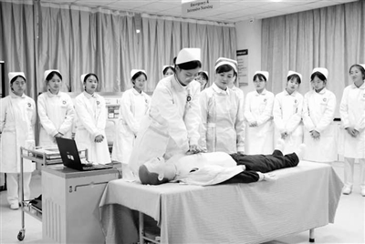 ①中南大學湘雅護理學院教授、博士生導師陳嘉在給學校護理“湘雅班”學生上實訓課。