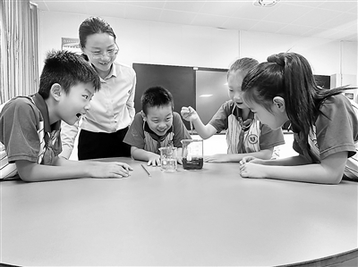 聊城市東昌府區(qū)英特學校的學生在教師的指導下做實驗。學校供圖