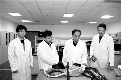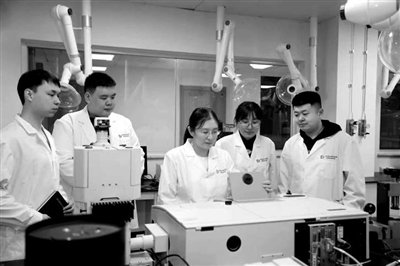 綠色造紙與資源循環全國重點實驗室主任吉興香教授(左二)指導學生實驗。