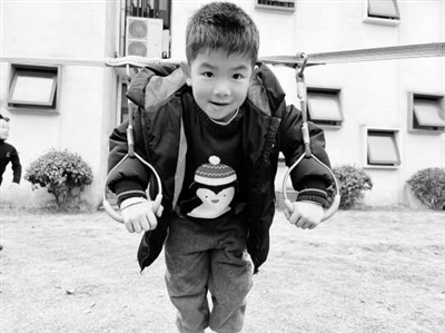孩子在練習抓吊環。 江西省蘆溪縣源南中心幼兒園供圖