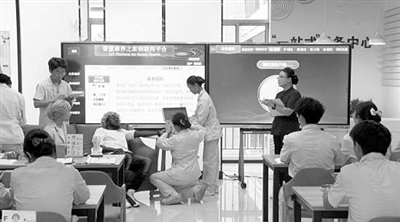 安徽省皖西衛(wèi)生職業(yè)學(xué)院附屬醫(yī)院老年護(hù)理??婆嘤?xùn)班教學(xué)現(xiàn)場。 資料圖片